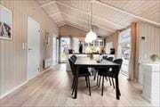 Når I træder ind i sommerhuset, mærker I straks den hyggelige atmosfære og fornemmelsen af, at her er plads til at nyde ferien sammen. De store sydvendte vinduer lukker masser af lys ind og skaber en forbindelse mellem husets rum og haven udenfor. De lyse trævægge giver en skøn sommerhusstemning, som sætter rammen for en fremragende ferieoplevelse.