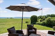 Foran huset er en dejlig træterrasse der både er øst- og sydvendt. Her findes gode havemøbler, liggestole, grill og et bålfad, så terrassen bliver naturligt en forlængelse af husets opholdsrum. Fra stuen er der direkte udgang til terrassen, og fortsætter man på gåben kan man gå over græsplænen, hvor der er en sti direkte ned til vandet, der ligger kun 50 meter fra huset.