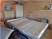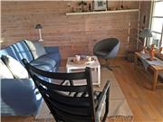 Det lille, moderne sommerhus lige ved Virserumssjön egner sig helt perfekt til en ferie for to eller for en lille familie. Huset ligger kun et par meter fra vandet, og de to dejlige terrasser gør oplevelsen til noget særligt. Lige foran huset ligger hovedterrassen, hvorfra man har en 180 graders udsigt over søen. Gennem den hyggelige havestue, med skydedøre og spisebord, er der adgang til tagterrassen med udsigt hele vejen rundt. I husets stue/soveværelse er der installeret køkken med gode hvidevarer. Komfuret er med keramiske kogeplader og ovn, og derudover er der emhætte, kaffemaskine og elkedel. I samme rum befinder der sig en moderne sovesofa, som kan klappes ud ved hjælp af to håndtag. Her kan der sove to personer på den komfortable madras. Om morgenen står man op til den smukkeste udsigt over søen. En stejl stige fører fra stuen og op til en hems med to madrasser, en oplagt soveplads til børn. På trods af lavt til loftet, kan hemsen også benyttes af voksne. Lige bag huset ligger der et lille toilethus med wc, håndvask og bad. Der er adgang til koldt og varmt vand, og alle værelser bliver opvarmet med elradiatorer. Til huset hører der havemøbler, grill, liggestole og en robåd, som frit kan benyttes.