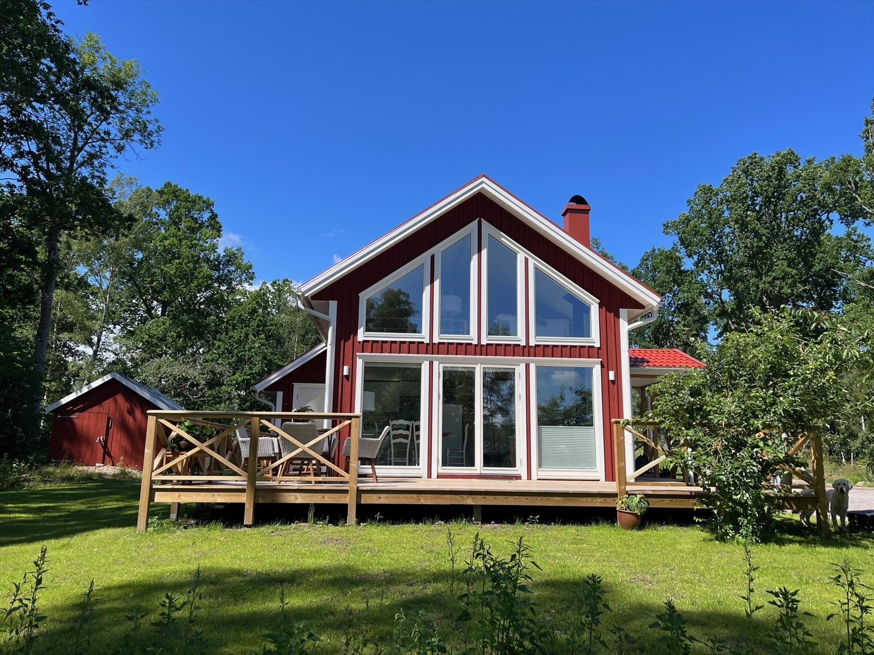 Når vejret er varmt, kan du slappe af på de fire liggestole udenfor. Wellness-elskere kan leje den typiske svenske træopvarmede badetønde hos husejeren for en uges pris. Til småbørn er der endda et oppusteligt soppebassin.