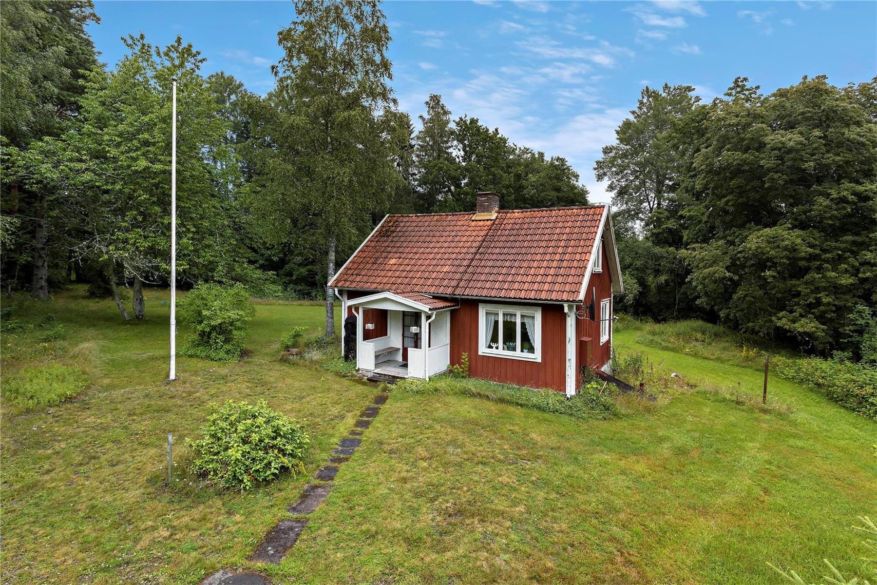 Feriehus Trollagärde - Rødt-hvidt sommerhus kun 50 meter fra idyllisk badesø
