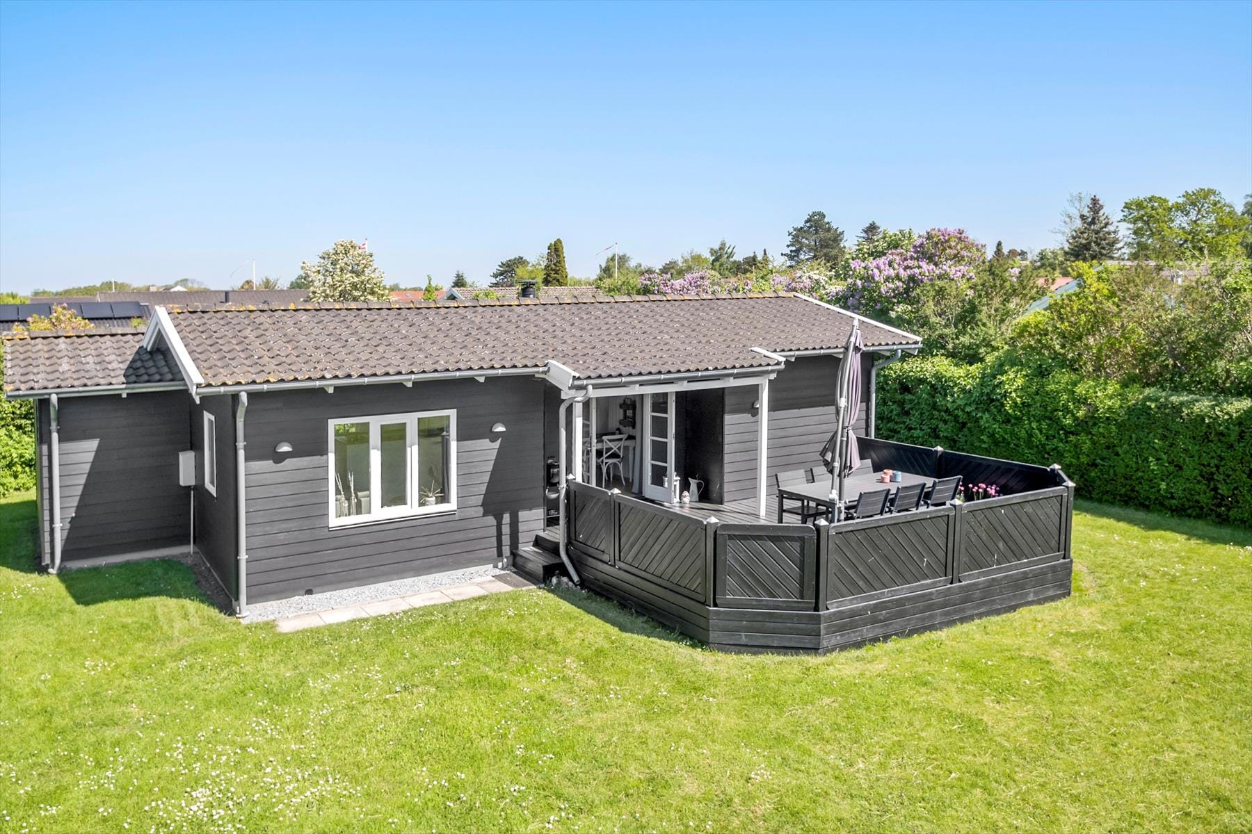 Hus-ID: N319Indendørs: Moderniseret feriehus, beliggende tæt på strand. Indeholder opholds/-spisestue med brændeovn. Udgang til solrig terrasse. Åbent køkken, med køleskab/fryser, komfur/ovn, microovn, opvaskemaskine. 2 værelser, 1 med dobb.seng (160x200), 1 med dobb.seng (140x200). Badeværelse med bruseniche, håndvask, toilet, vaskemaskin. Anneks på 16 m2 med 1 dobb.seng (180x200).
