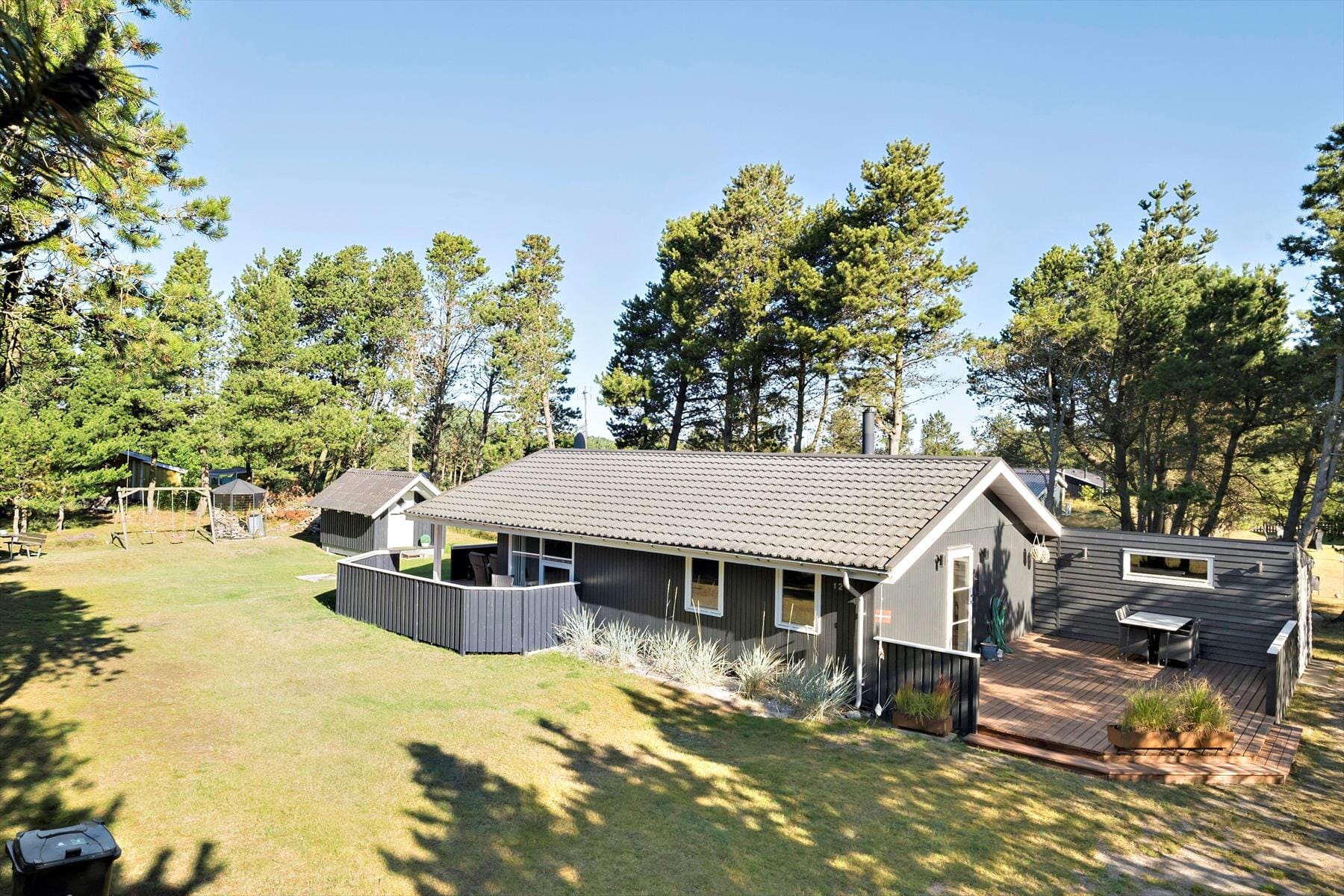 Både øst og vest for sommerhuset ligger et stort terrasseområde, så hvis I drømmer om at indtage både morgenmaden, frokosten og den friskgrillede aftensmad ude i solen, kan det sagtens lade sig gøre. I kan også sætte jer under overdækningen, hvis I trænger til skygge, når I slapper af – og har I derimod lyst til at komme op i omdrejninger, er der god plads til at lege og spille bold på græsplænen.