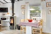 På en rigtig sommerhusferie skal der helst være afsat god tid til at spille terninger, løse krydsogtværser eller slappe af med andre tilbagelænede sysler. Sommerhusets lyse stue fungerer som en skøn ramme til det hele – også hvis du vil hygge dig med at bage boller eller forberede en god brunch i det åbne køkken. Hvis det er køligt udenfor, kan du tænde op i brændeovnen, inden du slænger dig i sofaen med en god film på fladskærms-tv’et. Og når det er ved at være tid til at sige godnat, kan du lige vende forbi badeværelset for at børste tænder, inden du går til ro på et af husets to soveværelser.