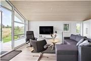 Dette skønne feriehus i Øster Hurup har en helt suveræn placering, hvis I holder af havluft og fri natur. Huset ligger blot 75 meter fra stranden, og fra både opholdsrum og terrasser er der en fantastisk udsigt over havet og det naturrige landskab.