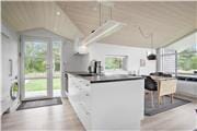 Der er en lys og indbydende stemning i huset, der er indrettet med fokus på det hyggelige sommerhusliv. Stilen er lys og nordisk, og pladsen er rigtigt godt udnyttet. De mange vinduespartier trækker masser af naturligt lys ind i opholdsrummet, hvor stue og køkken ligger i åben forbindelse. Fra stuen er der også et fantastisk kig til vandet og det omgivende naturlandskab – og med direkte udgang til terrassen kan I på de lune sommerdage slå dørene op, så ude og inde på det nærmeste smelter sammen. Huset har et soveværelse med dobbeltseng, og herudover er der i stuen en sovesofa, så der er plads til fire overnattende gæster. Som ekstra komfort kan I glæde jer over, at huset er udstyret med både opvaskemaskine, vaskemaskine og tørretumbler.