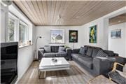 Huset er lyst og moderne indrettet i skandinavisk stil. Husets køkkenalrum er i åbenforbindelse med en hyggelig stue. Her er god plads til hele familien. Lav lækre fiskeretter i det store, rummelige og lyse køkken, alt imens børnene fornøjer sig med at spiller spil. Havudsigten kan nydes fra køkkenalrummet og husets førstesal; så luk terrassedøren op og nyd lyden af de blide bølgers vuggen. Huset har tre dejlige lyse værelser, et med to enkelsenge og to med dobbeltsenge. Badeværelset fremstår moderne med lyse elementer.