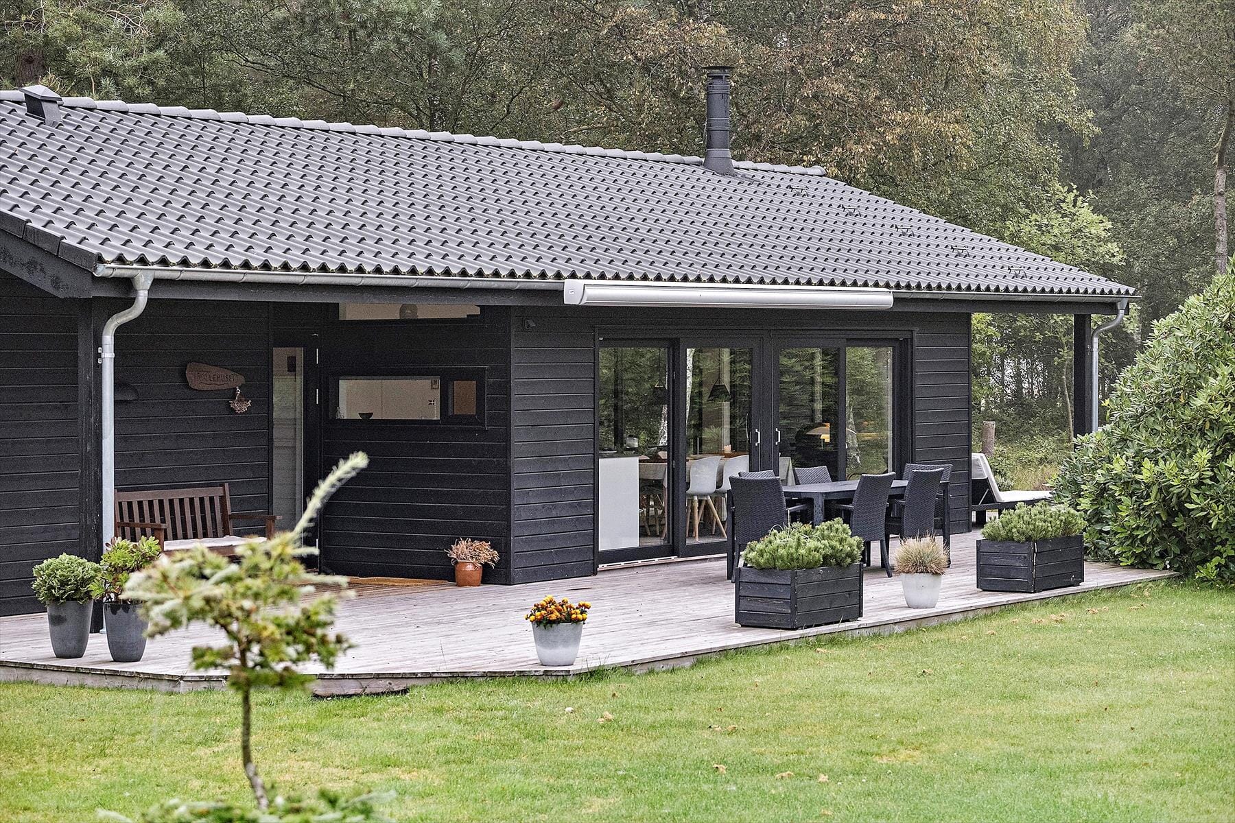 Der er meget godt at sige om det 92 m2 store sommerhus, der er opført i 2018 som et rigtigt kvalitetsbyggeri til fem personer. Alle rum er lyse og indbydende, og det pæne møblement er med til at skabe en skøn atmosfære inden døre. Det allervigtigste er nu næsten husets store, østvendte gavlvinduer, der sørger for, at I kan nyde synet af havet og naturgrundens bevoksning, når I slapper af nær stuens brændeovn eller hygger jer sammen ved spisebordet. Planløsningen i opholdsafdelingen er åben, så også fra det lækre køkken kan I kigge ud på de naturskønne omgivelser, når I skyller salat eller skærer kartofler. Et praktisk bryggers og et brusebadeværelse hører for øvrigt med til planløsningen foruden tre soveværelser, hvor I kan se frem til at sove godt og længe.