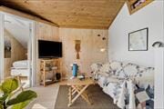 Træd ind i dette dejlige sommerhus og oplev en skøn atmosfære præget af naturlig charme og hygge. Indretningen er lys og indbydende, og huset byder på flere hyggelige kroge, hvor du kan slappe af med en god bog eller en kop kaffe. Den åbne planløsning forbinder køkkenet og stuen, hvilket skaber en rummelig og social ramme for madlavning og hyggelige stunder med familien. Brændeovnen i stuen giver en ekstra varme og atmosfære på kølige aftener, mens store vinduer lukker masser af lys ind og giver en smuk udsigt til den omkringliggende natur. Sommerhuset har tre dejlige soveværelser, som alle indbyder til en god nats søvn efter en dag fyldt med oplevelser.