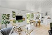 Det første, du lægger mærke til, når du træder indenfor, er, hvor lyst og indbydende her er. De åbne rum og den rolige indretning får hurtigt skuldrene til at sænke sig, og både stuen og det åbne køkken inviterer til hyggeligt samvær, gode snakke og lange morgenmåltider. Den store udestue med skydedøre forlænger opholdsrummet med masser af dagslys, og her kan du sidde og nyde udsigten over haven – uanset om solen skinner, eller regnen trommer blidt mod ruderne. Når dagen går på hæld, kan du finde en god bog frem, brygge en kop te og lade roen falde helt ind. Det føles som en verden væk fra hverdagen, og det er præcis sådan, feriestemning skal være.