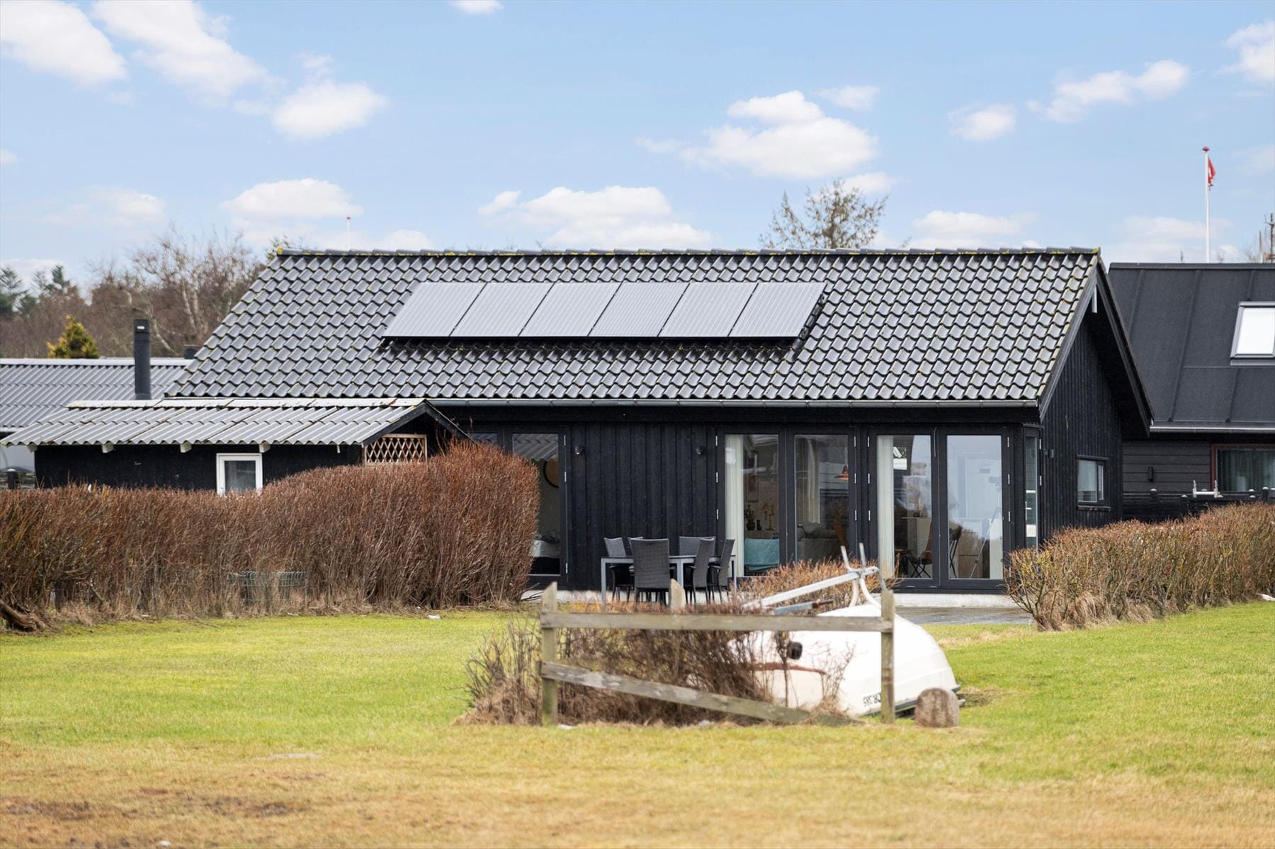 Udenfor venter de rolige omgivelser, der gør dette sommerhus til et helt særligt feriested. Her kan du virkelig mærke, hvordan tempoet sænker sig, når du træder ud i den friske luft og lader blikket vandre over landskabet og havet i horisonten. Udsigten over Kattegat er noget af det første, du bemærker – og noget af det sidste, du slipper igen, når dagen går på hæld. Forestil dig en stille morgen, hvor solen langsomt stiger op over vandet, mens du nyder din kaffe i fredelige omgivelser. Senere på dagen kan du finde en lun plads i solen og lade ferieroen brede sig, mens du lytter til vinden og fuglene i området. Når aftenen nærmer sig, er det oplagt at samles udenfor til et godt måltid og nyde den særlige stemning, der opstår, når lyset bliver blødere, og Kattegat glitrer i aftensolen. Her er plads til både afslapning, grin og de små øjeblikke, som gør ferien til noget helt særligt.