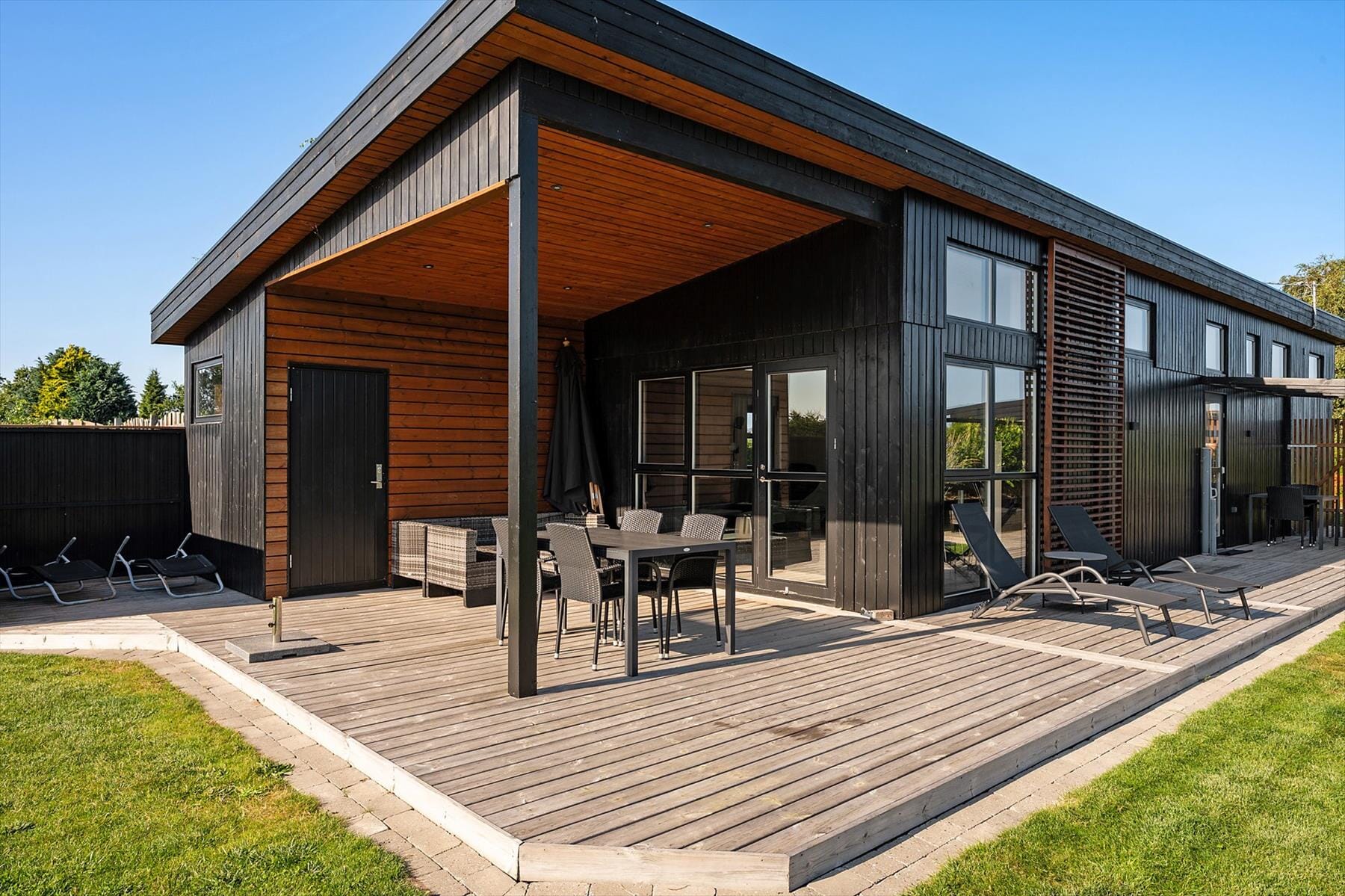 Moderne sommerhus med skønt terrassemiljø og indhegnet grund