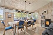 Inden døre i sommerhuset har I 106 veldisponerede kvadratmeter at brede jer på. Den lyse træbeklædning på vægge og lofter er noget af det, der bidrager til husets charmerende atmosfære, og stuens brændeovn er med til at give rummet den helt rette feriefornemmelse. Skal der virkelig hygges igennem med brætspil, snacks og filmaftener, er stuen et skønt opholdssted – og det er også her, I kan kokkerere i det åbne og velindrettede køkkenafdeling. På badeværelse er der badekar, hvis I trænger til et varmt og afslappende bad, mens gæstetoilettet er udstyret med vaskemaskine og tørretumbler, der gør det nemt at vaske tøj undervejs på ferien. Endelig byder planløsningen på tre rummelige værelser, der i alt kan rumme syv personer.