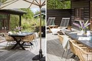 Med spabad og sauna på det største badeværelse, brændeovn i stuen og komfortable senge på soveværelserne er der lagt op til wellness og afslapning inden døre i det 96 m2 store sommerhus. Som supplement til husets tre soveværelser er der flere sengepladser i et anneks på 11 m2, og derfor kan I uden problemer være op til seks personer. En stor del af feriens vågne stunder kommer sikkert til at udspille sig i sommerhusets opholdsafdeling, hvor køkken-alrum og stue ligger i åben forbindelse. Her er der loft til kip og store vinduer, som skaber en god kontakt til terrassearealerne og giver udsigt til den grønne grund. Hvis I har børn med, vil de måske synes, de er hyggeligt at kravle op på hemsen for at lege, mens de voksne kræser om maden i det veludstyrede køkken eller hyggesnakker ved spisebordet.
