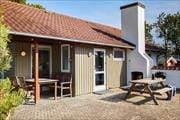 Sommerhuset har en stor terrasse, der både er åben og delvist overdækket, så du kan vælge, om du vil sidde i solen eller søge skygge. Forestil dig en stille morgen med morgenmaden rykket ud på terrassen, mens duggen stadig ligger på græsset, eller en varm sommeraften med grillhygge og lyden af bølgerne i baggrunden. De grønne omgivelser indbyder til afslapning og leg – børnene kan boltre sig på græsplænen, mens de voksne læner sig tilbage i havemøblerne med en god bog. Når mørket falder på, skaber terrasseområdet en helt særlig stemning med sit rolige og private udtryk.