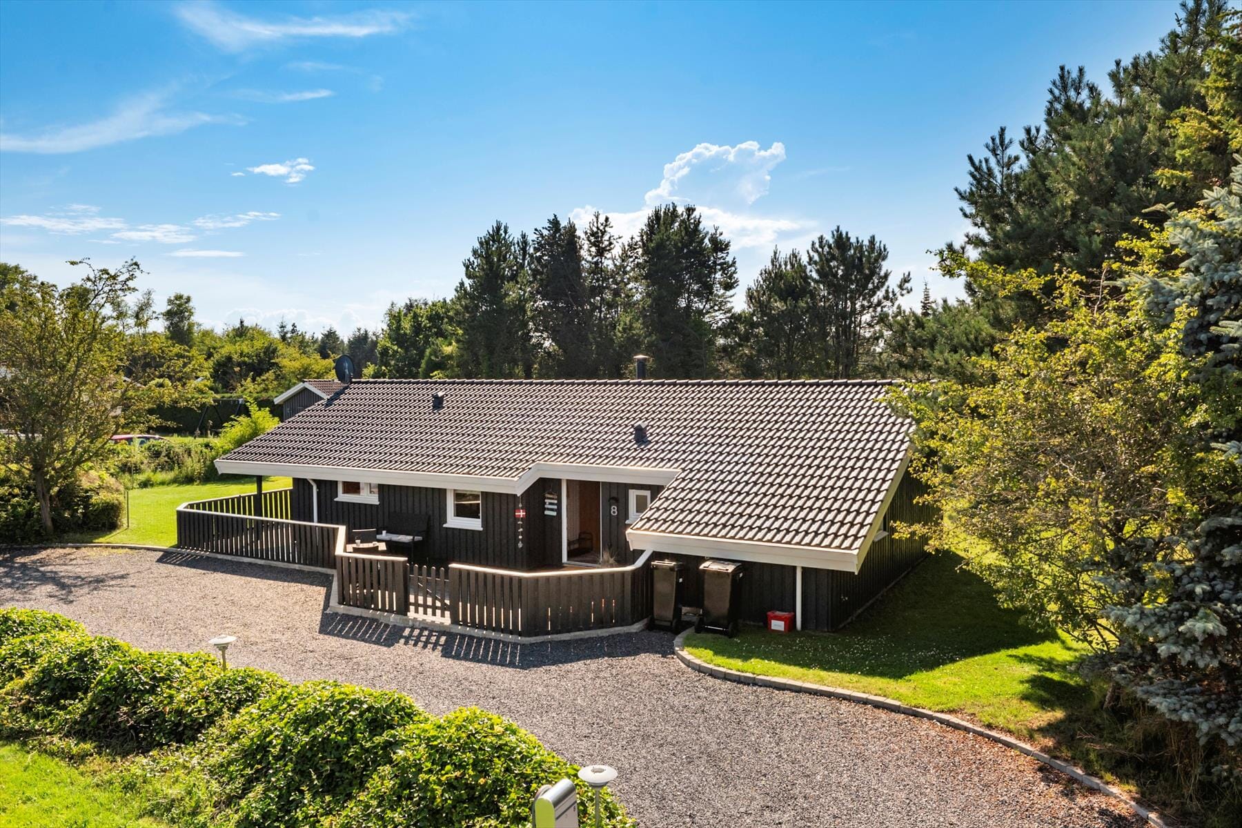 Sommerhuset har en stor terrasse, der både er åben og delvist overdækket, så du kan vælge, om du vil sidde i solen eller søge skygge. Forestil dig en stille morgen med morgenmaden rykket ud på terrassen, mens duggen stadig ligger på gr æsset, eller en varm sommeraften med grillhygge og lyden af bølgerne i baggrunden. De grønne omgivelser indbyder til afslapning og leg – børnene kan boltre sig på græsplænen, mens de voksne læner sig tilbage i havemøblerne med en god bog. Når mørket falder på, skaber terrasseområdet en helt særlig stemning med sit rolige og private udtryk.