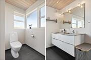 Gennem havedørene har I nem adgang til de dejlige terrasser, der smyger sig om flere af husets sider. Der er både åbne og overdækkede terrasseområder at vælge imellem, og hvis I foretrækker græs under fødderne, kan I rykke havestolene ud på den grønne plæne på den 3000 m2 store, skønne og lukkede grund. Til de yngste familiemedlemmer er der legestativ, og derudover er der både udekøkken og udendørs bruser med koldt vand – så der er stort set ingen grund til at gå indenfor på sommerlige solskinsdage.