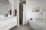 Med 122 m2, der blandt andet byder på fire soveværelser og to badeværelser, er der masser af plads til hele familien – eller måske endda to børnefamilier, hvis I gerne vil holde ferie sammen med gode venner. Under alle omstændigheder kan I se frem til at tilbringe dagene i stilfulde og komfortable rammer, for huset er et moderne byggeri med mange lækre detaljer. Eksempelvis er der gulvvarme i alle rum, hvilket giver et behageligt indeklima, og de store vinduespartier og lyse farvetoner bidrager til den dejlige rumfornemmelse. Stuen er som skabt til hyggelige stunder i sofaafdelingen og lækre middage ved langbordet, og i det åbne køkken kan I sagtens være flere om at kokkerere. Trænger I til total afslapning, kan det foregå i spabadet på det største badeværelse.