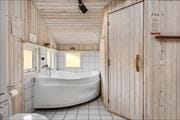 BEMÆRK: Den tilhørende fællesbygning er åben fra påske til og med uge 42, og her finder i en stor indendørs pool på 50 m2 og legeplads. Har man brug for at vaske og tørre tøj til de mange badeture i Vesterhavet er der vaskemaskine og tørretumbler til møntindkast i fællesbygning. Fra omklædningsrummene har man adgang til to saunaer; vær opmærksom på at saunaerne er kønsopdelte og kræver møntindkast, og at fællesbygningen ikke kan benyttes fra uge 43 og frem til påske.