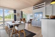 Feriehuset har store terrassearealer, skønne vinduespartier og byder på en moderne indretning.