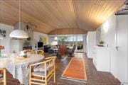 Sommerhuset emmer af hyggelig sommerhusstemning med sin brændeovn i den dejlige stue, der ligger i åben forbindelse med spisestuen og det nye køkken fra 2023. Her kan du samles med familien til måltider og hyggelige stunder foran ilden, der knitrer i brændeovnen. Det åbne køkken er moderne og veludstyret, så du nemt kan tilberede lækre feriemåltider. Fra stuen er der direkte udgang til den store træterrasse, der omkranser huset, og skaber en perfekt overgang mellem inde- og udelivet.