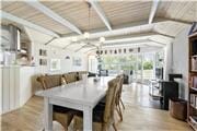 Hus-ID: 617-NI dette sommerhus er der plads til hyggelige stunder med familien. Det åbne køkken ligger i direkte forbindelse med opholdsstuen, hvor der både er spiseplads til fælles måltider eller hygge med brætspil og en hyggelig sofagruppe til afslapning og samvær foran fjernsynet eller med en god bog. Fra stuen er der direkte udgang til en delvist overdækket terrasse, hvor I kan nyde morgenkaffen eller aftensolen, uanset vejret.