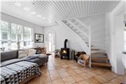 Dette hyggelige, lyse sommerhus i to plan er den perfekte ramme for en afslappende ferie. I stueplanen finder du en indbydende opholdsstue, hvor den knitrende varme fra brændeovnen inviterer til afslapning. Her kan du synke ned i sofaen med en god bog, et puslespil eller nyde en film på fjernsynet, mens du føler varmen sprede sig i rummet. Spisepladsen, som er omringet af vinduer, giver dig mulighed for at observere haven, hvor du måske får øje på en hare, der kigger forbi, mens du nyder din morgenmad. Detaljer som disse skaber den hyggelige atmosfære, som gør sommerhuset til et fantastisk sted at være, hvad enten du søger ro eller fællesskab. På 1. salen finder du husets soveværelser samt en lille balkon, hvor du kan trække dig tilbage og nyde en god bog i fred og ro.