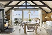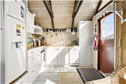 Man træder ind i sommerhusets lyse køkken som ligger i åben forbindelse til den hyggelige stue som er holdt i træ med loft til kip og fritlagte bjælker. Der er store vinduer ud mod havet, som giver et dejligt lysindfald og en fantastisk udsigt over havet, Rubjerg Knude og de små fiskerhuse i Lønstrup by. Brændeovnen fuldender den gode sommerhusstemning.