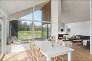 Når du træder ind i dette eksklusive sommerhus, vil du straks bemærke den moderne og stilfulde indretning, der emmer af luksus og komfort. Huset er designet med en åben planløsning, hvor køkkenet og stuen er integreret, hvilket skaber en rummelig og lys atmosfære. Loftet til kip og de store vinduespartier sikrer et fantastisk lysindfald, der fremhæver de smukke detaljer i det enestående byggeri. Køkkenet er veludstyret og indbyder til hyggelig madlavning, mens biopejsen i stuen skaber en varm og hyggelig stemning på kølige aftener. For ekstra underholdning har huset et aktivitetsrum med shuffleboard og bordtennis, perfekt til sjove stunder med hele familien.