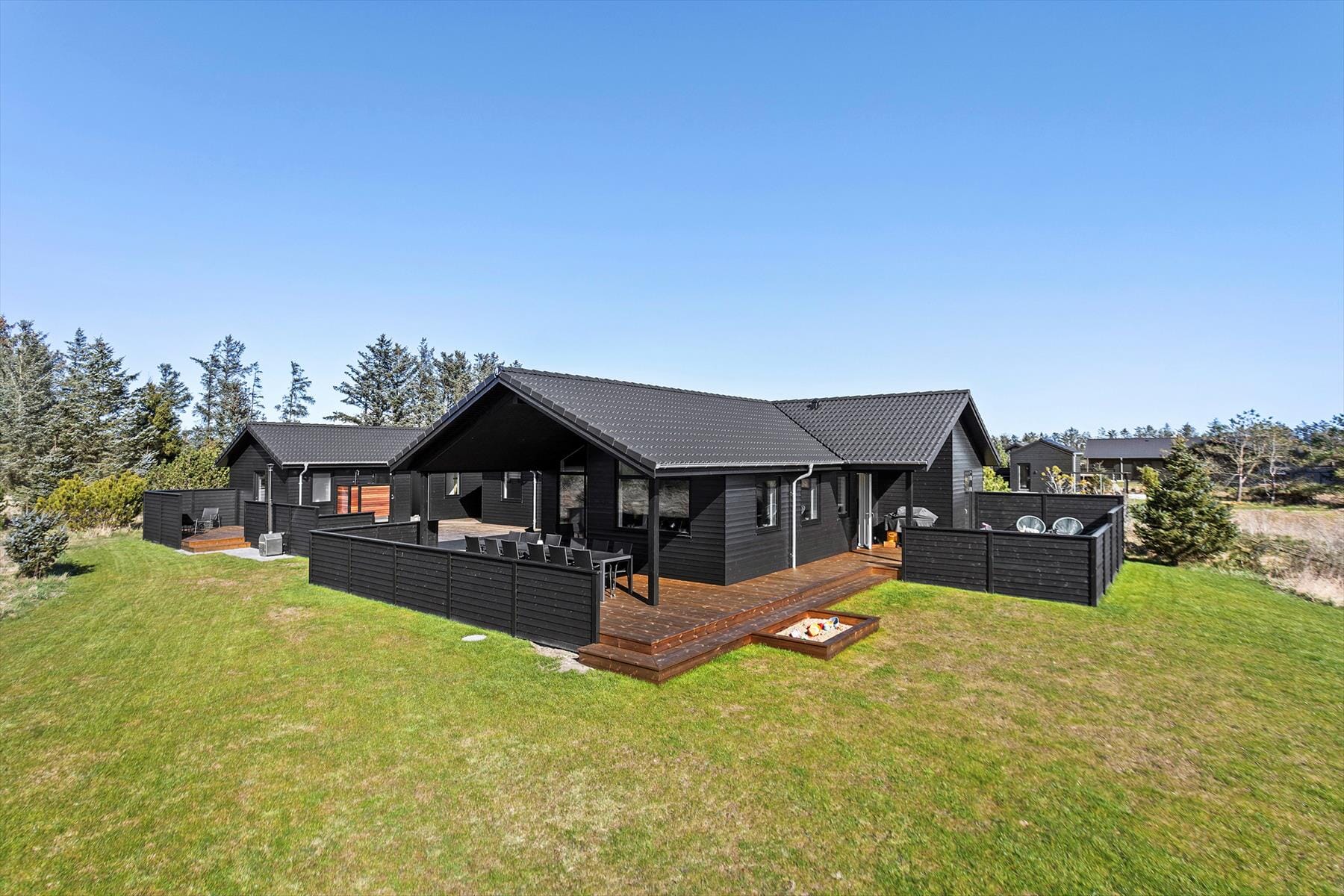 Udenfor byder sommerhuset på en kæmpe terrasse, der omkranser huset og giver rig mulighed for at nyde solen hele dagen. En del af terrassen er overdækket, så du kan sidde i læ og skygge, uanset vejret. Den store naturgrund inviterer til leg og aktivitet for både børn og voksne, og for de eventyrlystne er der et vildmarksbad, hvor du kan slappe af i det varme vand under åben himmel. Udebruseren med både koldt og varmt vand er en skøn detalje efter en tur i havet eller vildmarksbadet. Her kan du virkelig opleve den ultimative afslapning i naturskønne omgivelser.