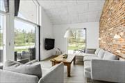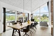 Når I træder indenfor i det 150 m2 store sommerhus, bliver I mødt af åbne rumforløb, lyse farvetoner og mange skønne detaljer. Fra entréen er der åben forbindelse til et moderne køkken, og herfra kan I fortsætte videre ind i stuen, der byder på blandt andet spisebord, sofaarrangement, en hyggelig alkove og fladskærms-tv. Den stilfulde indretning i kombination med en rå murstensvæg, loft til kip og store vinduespartier skaber en skøn atmosfære og giver jer den smukkeste ramme om feriens indendørs hyggestunder. De fire soveværelser giver jer mulighed for at sove godt og længe, og på det ene badeværelse er der vaskemaski ne og tørretumbler, mens det andet er et rigtigt wellnessrum med sauna og badekar.