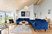 Et dejligt og rummeligt sommerhus med plads til otte overnattende personer fordelt på fire værelser. På det ene værelse er en sovesofa og en PlayStation 3-konsol, og i det hele taget er huset godt udstyret med pæne møbler, moderne faciliteter og nyttige hjælpemidler, som f.eks. vaskemaskine og tørretumbler, gratis trådløst internet og både sauna og spabad på det store badeværelse. Det kombinerede køkken og opholdsrum med tv og brændeovn lægger op til mange hyggelige timer, og herfra er der også udgang til terrassen. Et fint og meget anvendeligt sommerhus med alle muligheder for en afslappende ferie.