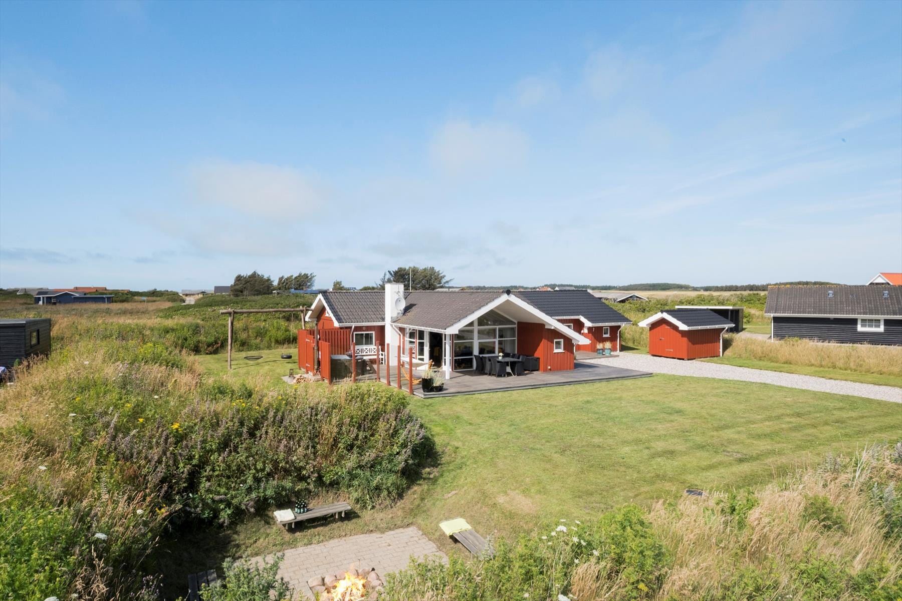Sommerhuset ligger i et lukket område mindre end 10 minutters gang fra klinten, der markerer overgangen til Furreby Strand. Udsigten fra toppen er storslået, og hvis I vil helt ned for at bade i Vesterhavet, kan I tage en trappe trygt ned på sandet. Fra sommerhuset er der et par kilometer til Løkken, hvor I finder et godt udvalg af spisesteder, supermarkeder og butikker – inklusiv et bryggeri, flere gallerier og et populært bolsjekogeri, hvor I kan se, hvordan man fremstiller de søde fristelser.