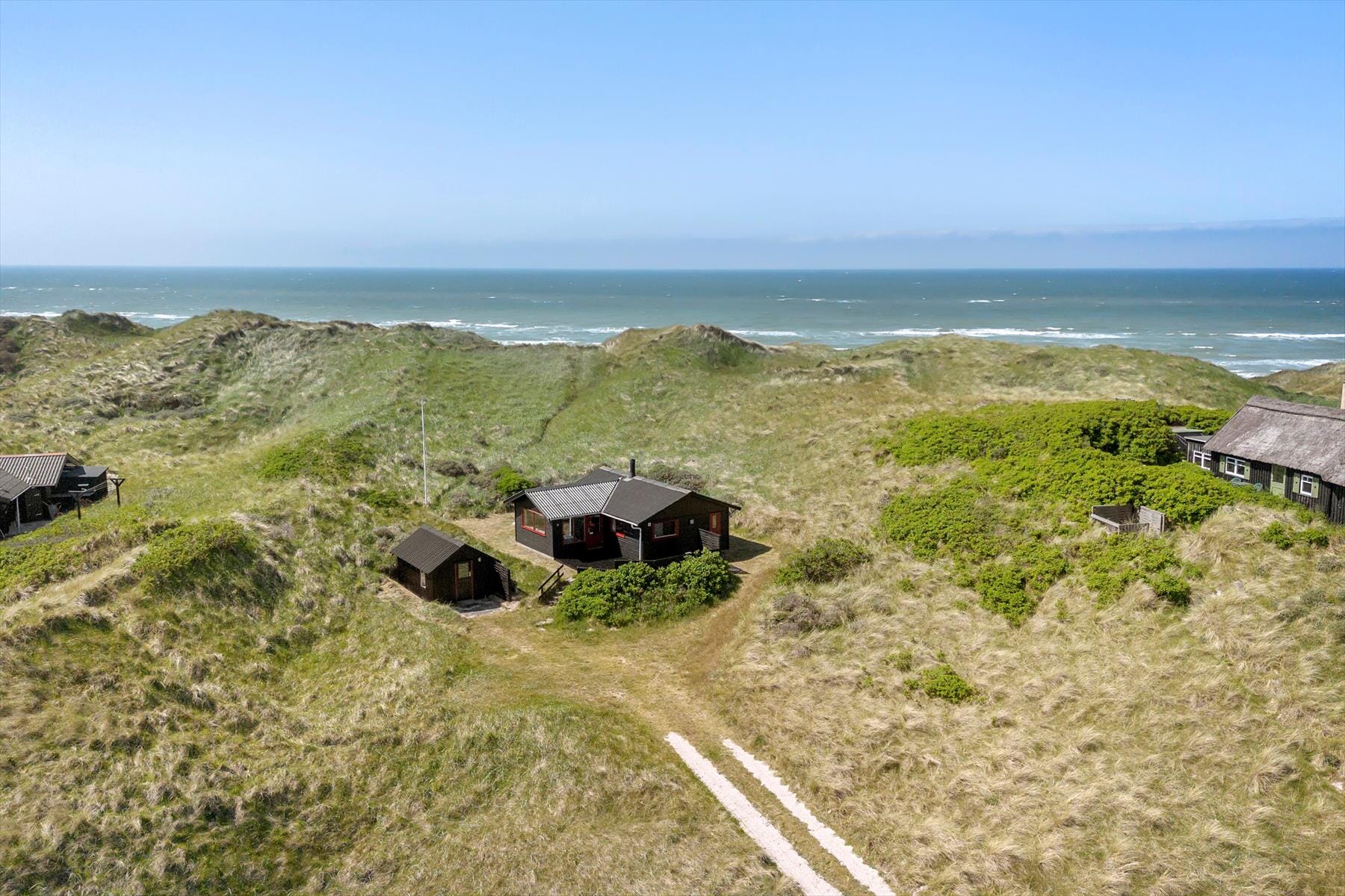 Den 2600 m2 store klitgrund ligger helt forrygende for enden af Ellysvej og lige ud mod stranden. Ved huset ligger en dejlig terrasse, hvor I kan slappe af i liggestolene i løbet af dagen og grille om aftenen – og måske kan I endda fornemme lyden af bølgerne og duften af salt havluft, når I sidder her og nyder freden.