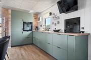 Det nyrenoverede sommerhus byder dig velkommen med en lys og lækker indretning, hvor alt fremstår gennemført og nyt. Køkken og stue ligger i åben forbindelse, hvilket skaber en dejlig sammenhæng i opholdsrummet og gør det nemt at samles om madlavning, brætspil og afslappende stunder. Det moderne køkken er designet med tanke på både funktionalitet og æstetik, og i stuen er stemningen rolig og behagelig – her kan du finde dig til rette i sofaen efter en lang dag ved stranden. Sommerhuset har flere gode soveværelser med komfortable senge, og dertil kommer et charmerende anneks med to ekstra sovepladser – perfekt til børnene eller de, der ønsker lidt mere privatliv. Med hele to flotte badeværelser er det let at være flere under samme tag, og med mulighed for opladning af elbil er huset også velegnet til dig, der ønsker en mere bæredygtig ferieform.