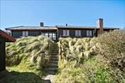 Sommerhuset har ligget her i første klitrække lige siden 1971, og selvom det er blevet løbende vedligeholdt og renoveret, har det heldigvis fået lov til at beholde sin klassiske charme. De rustikke trælister på vægge og loft bidrager til den varme og rare atmosfære i rummene, der tilsammen breder sig over 120 m2. Stuen er et skønt opholdsrum med brændeovn, fladskærms-tv og åben forbindelse til køkkenet. Fine, påmalede dekorationer pryder nogle af de profilerede døre, der leder ind til husets tre soveværelser og to badeværelser. Det ene soveværelse er indrettet med køjeseng, der egner sig bedst til børn, og alternativt er der mulighed for at overnatte på hemsen. Det største soveværelse har til gengæld egen pejs, og så ligger det lige ud til et ekstra opholdsrum, hvor I kan spille bob eller slappe af i sofaen med en god bog.