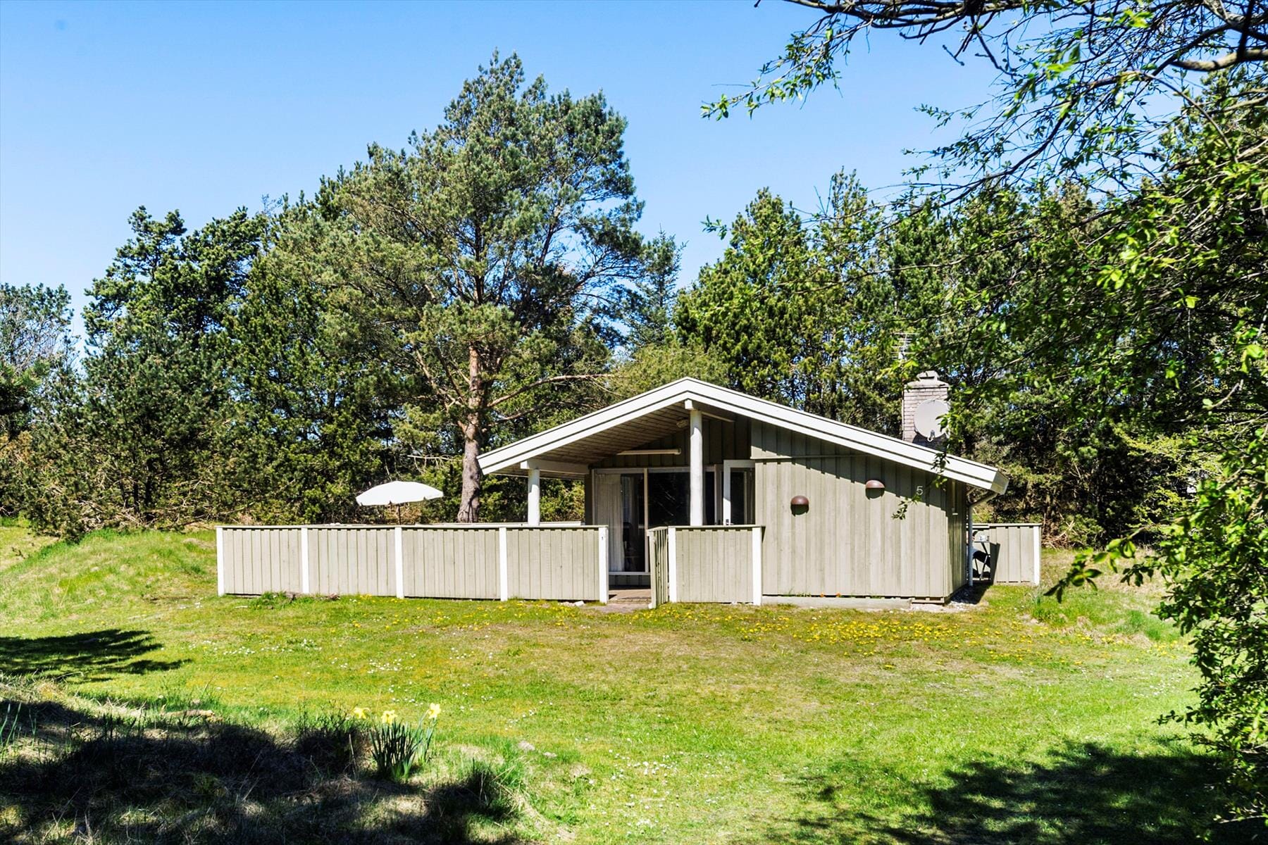 Når vejret er godt, kan du nyde livet udendørs på den store terrasse, som er ideel til både afslapning og udendørs måltider. Den solrige terrasse er perfekt til at nyde en stille morgenkaffe, tage en pause efter en aktiv dag eller grille aftensmaden, mens solen går ned. Med den store naturgrund omkring huset er der god plads til leg og udendørs aktiviteter, og du vil hurtigt finde dig til rette med roen og den smukke natur omkring dig.