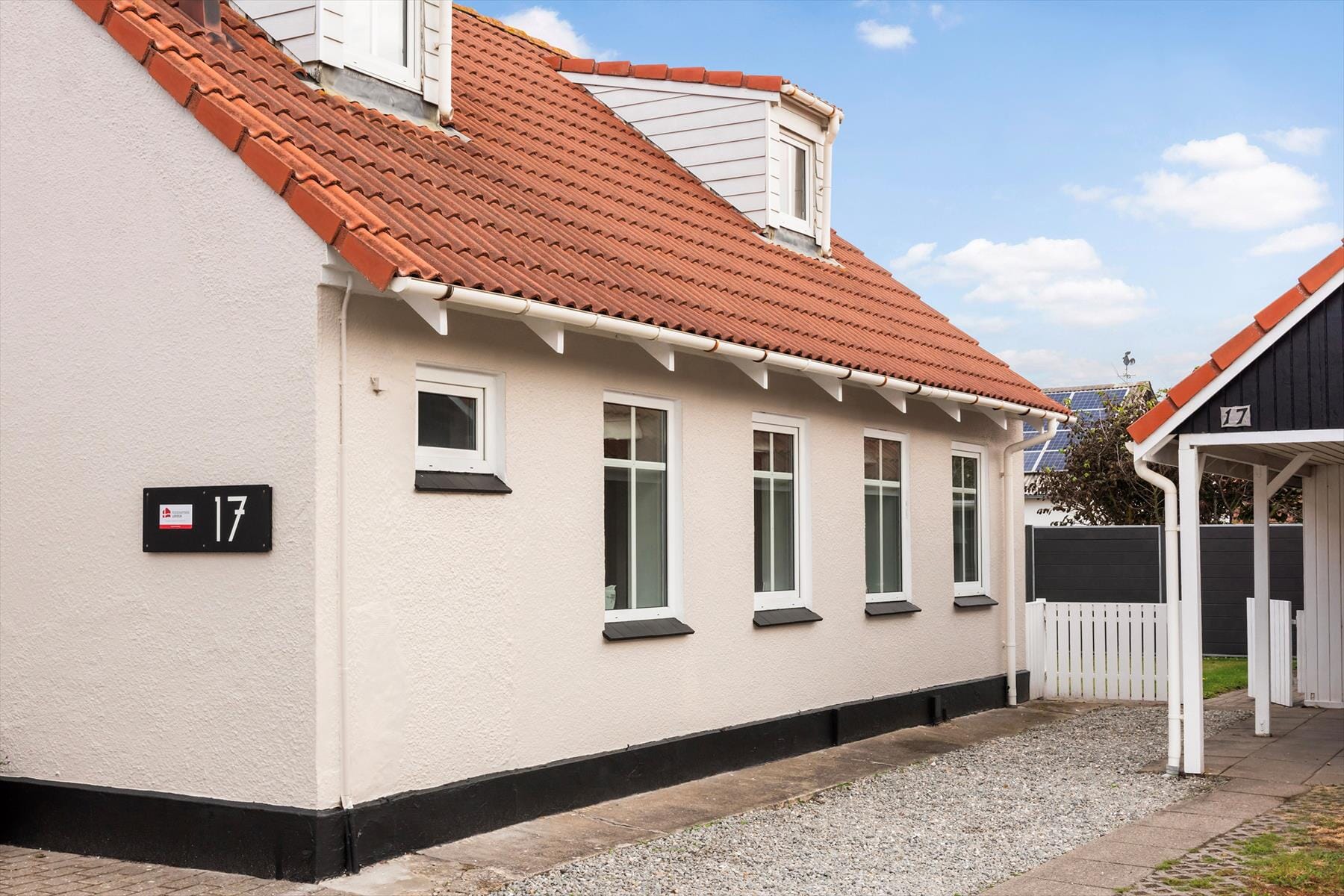 I den flotte og lukkede have på 467 m2 kan man nyde vestkystens sol i læ for vinden. Der er græsplæne og to flotte terrasser, hvor der altid er mulighed for at fange solen fra morgen til hen mod aften. Fra haven er der adgang til det 17 m2 store skur, og den store carport og indkørslen giver uden problemer plads til to biler.