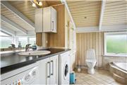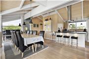 Huset er smagfuldt og gennemført indrettet, og med sine store vinduespartier, kan man sidde og nyde den storslåede natur direkte fra stuen alt imens ilden knitrer i brændeovnen. Spiseafdelingen ligger i forbindelse med det veludstyrede køkken, og herfra er der en dejlig atmosfære året rundt. Sommerhuset er velegnet til både familier og par, da de fire soveværelser – alle med dobbeltsenge - er fordelt i hver sin ende af huset, og med to badeværelser behøver man ikke vente på hinanden om morgenen. En drømmebolig hele året rundt!