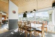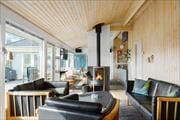 Et dejligt sommerhus med varm og indbydende indretning. I midten er deret stort opholdsrum bestående af et nyt flot køkken, spisestue og stue med brændeovn, og udsigt over den flotte grund gennem de store vinduer. En helt igennem hyggelig og afslappende atmosfære. Med fire værelser og to badeværelser er her plads til to familier, og det endda uden kø til morgenbadet. Af børnevenlige tiltag kan nævnes barneseng- og stol, gulvvarme på badeværelser, og vaskemaskine og tørretumbler. De lidt større børn vil sikkert sætte pris på det trådløse og gratis internet, så de kan spille og skrive på deres medbragte pc eller tablet. Fra spisestuen er der adgang til det store poolrum, som børnene hurtigt vil afprøve.
