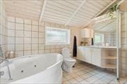 Når du træder ind i dette lyse og indbydende sommerhus, vil du straks føle dig hjemme. Huset er indrettet med loft til kip og store vinduespartier, som sikrer et fantastisk lysindfald hele dagen. Den åbne planløsning kombinerer køkken og stue, hvilket gør det nemt at deltage i samtalen, mens du forbereder måltiderne. Her er tre dejlige soveværelser, hvoraf to har dobbeltsenge, og det tredje har to enkeltsenge, hvilket gør det ideelt til både familier og venner. Sommerhuset har desuden et badeværelse med både spabad og sauna samt et ekstra gæstetoilet.