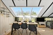 Vil I ikke nyde solen indenfor, men ude i det fri, behøver I bare åbne havedøren og træde ud på terrassen. Den er stor, så der er flere gode solkroge at vælge imellem – og så ligger der endda endnu en solrig terrasse på den 1.302 m2 store grund. Her er der både installeret en udendørs bruser og et vildmarksbad, og derfor er der lagt op til både et opkvikkende morgenbad og en afslappende wellness-stund under stjernehimlen.