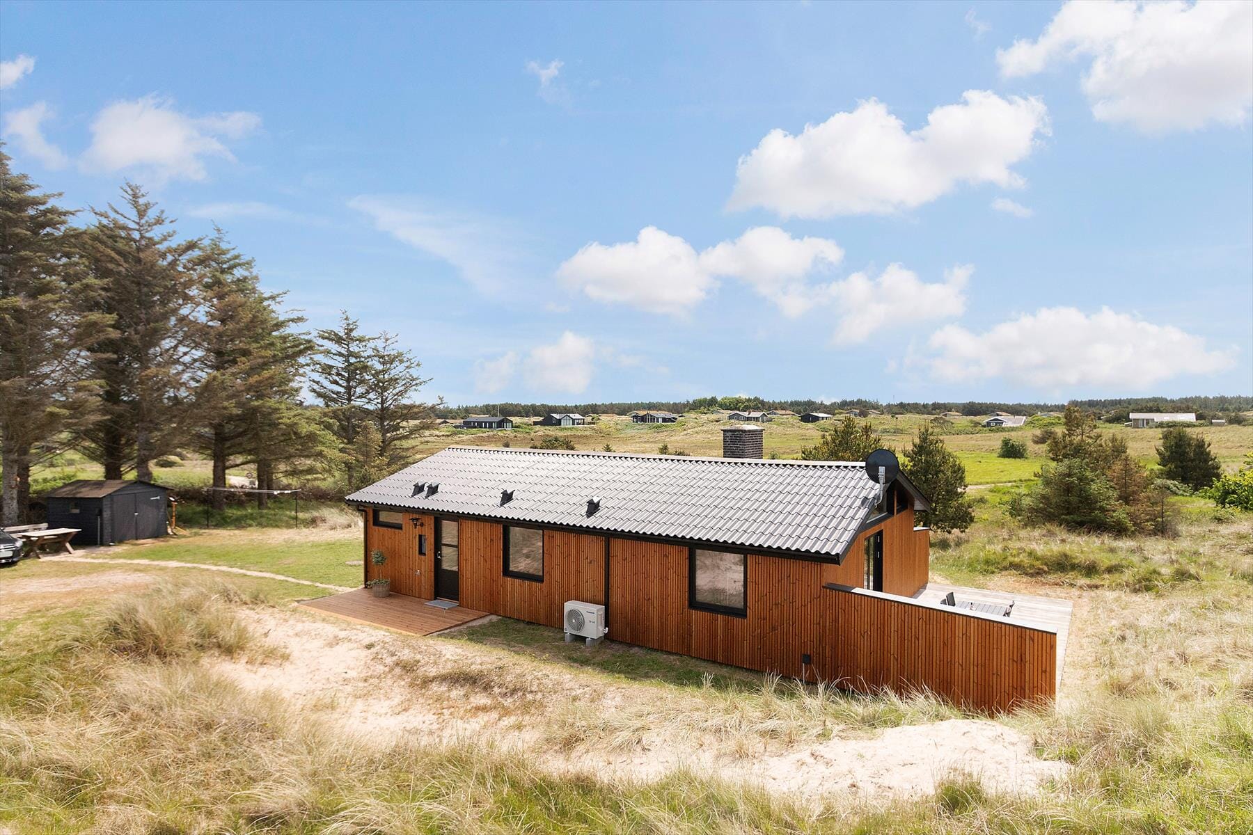 Sommerhusets beliggenhed i det kuperede landskab omkring Kettrup Bjerge skaber en helt særlig ferieoplevelse. Grunden er roligt beliggende og tilbagetrukket fra vejen, og herfra har du en betagende udsigt til den omkringliggende natur – det er ikke ualmindeligt at spotte rådyr eller høre lærkerne synge i morgensolen. De to skønne terrasser mod syd og vest gør det nemt at nyde udelivet i løbet af hele dagen. Her kan du starte morgenen med kaffe i solen, slappe af med en bog i liggestolen eller samles omkring grillen til aftensmad med udsigt til de gyldne solstråler, der langsomt forsvinder bag klitterne. I det naturskønne terræn omkring sommerhuset er der rig mulighed for at lade børn og hund lege frit, mens du nyder stilheden og den friske luft. Om sommeren kan du nærmest dufte havet, som kun ligger en kort gåtur væk gennem det smukke landskab.
