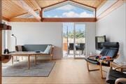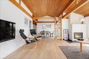 Glæd dig til at træde ind i et lyst og stemningsfuldt sommerhus, hvor du straks mærker roen sænke sig. Det smagfuldt renoverede hus på Kettrup Bjerge Vej 67 fremstår moderne og indbydende med hyggelige detaljer og masser af charme. I det åbne opholdsrum strømmer lyset ind gennem de store vinduer og skaber en behagelig og varm atmosfære, som inviterer til både samvær og afslapning. Midt i rummet står den knitrende brændeovn klar til at varme jer op efter en frisk gåtur ved havet – perfekt til hyggelige aftener med spil, bøger og tæpper i sofaen. Det åbne køkken har sin egen rustikke charme, og det er nemt at være fælles om madlavningen, mens snakken går ved spisebordet. De gode værelser giver mulighed for, at både familie og venner kan få en dejlig nattesøvn efter dagens oplevelser, og har du hunden med, er den selvfølgelig også mere end velkommen.