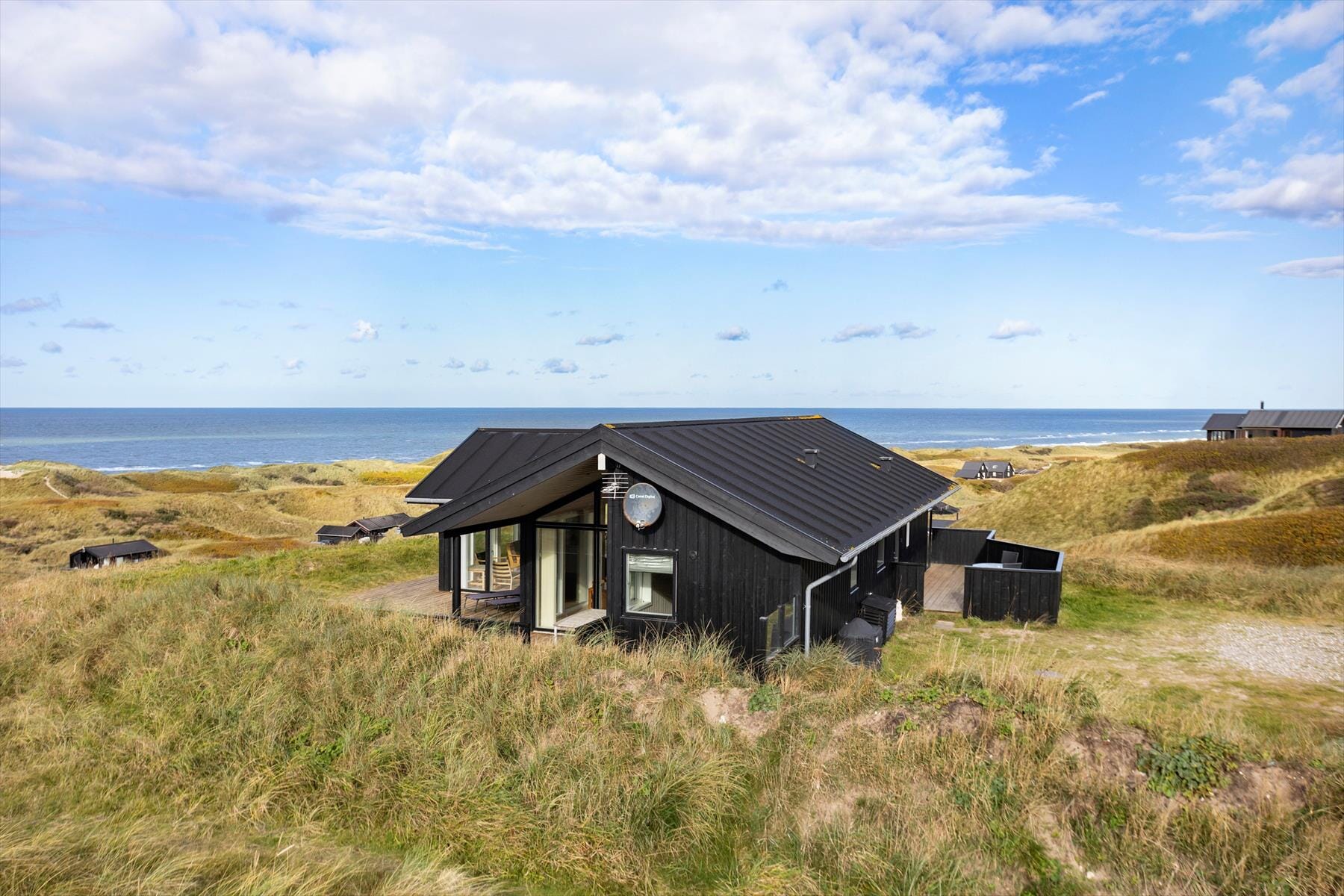 Det sorte træ og de store glaspartier giver huset et elegant ydre udtryk, mens det lyse træ, det høje loft og det nordjyske lys tilsammen danner en indbydende og hyggelig atmosfære indenfor. Huset består af tre soveværelser, et badeværelse, en hems, et bryggers og et stort og sammenhængende køkken- og opholdsrum med direkte kig til Vesterhavet fra tre sider; en af de bedste udsigter vi kan tilbyde i dette område. Huset er lige velegnet til en parferie som til et ophold med børn. Der er mulighed for at vaske og tørre badetøj og håndklæder, så man er klar til at bade i Vesterhavet flere gange om dagen. Man vælger dette sommerhus, hvis man er vild med Vesterhavet, gerne vil have naturen tæt på og sætter pris på høj kvalitet.