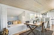 Et sommerhus med gennemført hyggelig indretning, hvor ejernes store kærlighed til stedet skinner klart igennem. Alt er velholdt og i fin kvalitet, så her kan man virkelig nyde sin ferie i de skønneste rammer. Køkkenet er af nyere dato og ligger ud-i-et med spisestue og stue, hvor der kan tændes op i brændeovnen, hvis vejret er køligt. Huset råder over tre soveværelser med dobbeltsenge, hvoraf de to er placeret i en moderne vinkeltilbygning ved entreen, og i stuen finder man en indbygget alkove, som kan bruges til hyggested eller som en ekstra soveplads. Overalt kan man gå på det gratis og trådløse internet, så det er en god ide at pakke pc eller tablets med til opholdet.