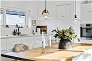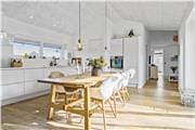 Der er kælet for alle detaljer i dette hus, som er opført i en enkel og tidløs arkitektur med rolige flader og store vinduespartier. Indenfor er der en utroligt lys og venlig atmosfære, som skaber gode rammer om ferieturens hyggelige samvær. Det kan I blandt andet se frem til at nyde i det store køkken-alrum, der tilbyder god plads til de kulinariske udfoldelser – og et stort spisebord til at servere dem på. Mellem alrum og stue er der en muret dobbeltsidet pejseindsats, som sender varme og hygge til begge sider – en helt unik detalje, der gør det til en særlig oplevelse at sidde i sofaen, når aftenen er faldet på. I huset er der endvidere tre soverum med dobbeltseng samt en sovesofa til to personer. Endelig er der to badeværelser og et bryggers.