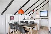 Indenfor i sommerhuset bliver du mødt af en varm og stemningsfuld indretning med hvidmalede vægge og sorte bjælker, der skaber en hyggelig kontrast og en rustik charme. Husets åbne køkken-alrum er det naturlige samlingspunkt, hvor du kan nyde madlavningen i fællesskab med familie og venner, mens du samtidig kan følge med i samtalerne. De tre værelser tilbyder en rolig oase til afslapning efter en aktiv dag, og badeværelset med bruseniche giver en praktisk og komfortabel mulighed for en opfriskende start på dagen. Huset er perfekt til dem, der søger et afslappende ophold tæt på naturen og Vesterhavets magiske kystlinje.