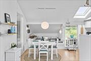 Atmosfæren er let og luftig inden døre i sommerhuset, der måler 64 m2 og har en glimrende planløsning til fire personer. I har også mulighed for at sove i stuens alkove, og om ikke andet passer den perfekt til en hurtig middagslur eller en eftermiddag på langs med en spændende roman. Stuen byder derudover på et hyggeligt sofaarrangement nær brændeovnen og et spisebord, der står praktisk placeret nær det pæne, åbne køkken. Den lyse og velfungerende indretningsstil pryder også badeværelset, der byder på bruser og vaskemaskine.