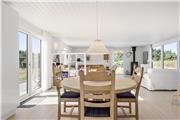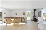 Dette sommerhus er veludstyret med en masse gode rammer og faciliteter samt trådløst internet, her mangler ikke noget. Indretningen og interiøret er holdt i en klassisk og charmerende stil med masser af lys fra de store vinduespartier i det åbne opholdsrum. Sommerhuset er velegnet til både familier og par, med 4 soveværelser og med to badeværelser behøver man ikke vente på hinanden om morgenen. Midt i opholdsrummet står en brændeovn, som hurtigt spreder varme og hygge på de kolde dage, mens man om sommeren kan træde ud på de åbne terrasser som omkranser huset. Hele sommerhuset byder på virkelig gode forhold for både voksne og børn!